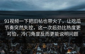 旧帖猛然爆火,改变了吃瓜节奏 近期,91视频平台上一个旧帖一下子爆火,瞬间引起了广泛关注。这一现象不...