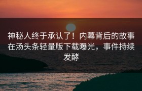 神秘人终于承认了!内幕背后的故事在汤头条轻量版下载曝光,事件持续发酵