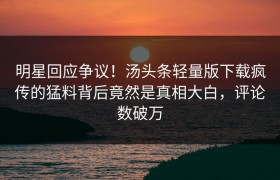 明星回应争议!汤头条轻量版下载疯传的猛料背后竟然是真相大白,评论数破万