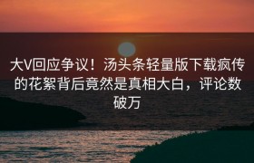 大V回应争议!汤头条轻量版下载疯传的花絮背后竟然是真相大白,评论数破万