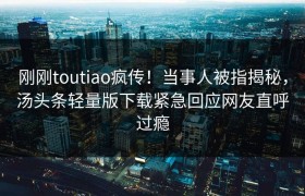 刚刚toutiao疯传!当事人被指揭秘,汤头条轻量版下载紧急回应网友直呼过瘾