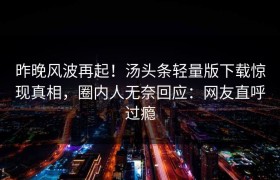 昨晚风波再起!汤头条轻量版下载惊现真相,圈内人无奈回应:网友直呼过瘾