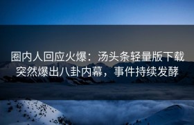 近日,一则关于汤头条轻量版的消息迅速引起了网络的广泛关注和热议。许多用户都在深夜惊讶地发现,在下载并...