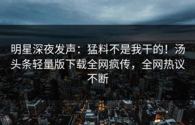 明星深夜发声:猛料不是我干的!汤头条轻量版下载全网疯传,全网热议不断