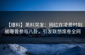 【爆料】黑料突发:网红在凌晨时刻被曝曾参与八卦,引发联想席卷全网 近日,一则关于知名网红的爆料突然引...
