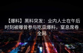 【爆料】黑料突发:业内人士在午后时刻被曝曾参与吃瓜爆料,窒息席卷全网 近日,关于业内人士的惊人黑料在...