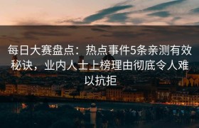 每日大赛盘点:热点事件5条亲测有效秘诀,业内人士上榜理由彻底令人难以抗拒