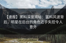 【速报】黑料深度揭秘:猛料风波背后,明星在后台的角色近乎失控令人意外 近年来,娱乐圈风波不断,明星们...