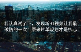 我认真试了下,发现新91视频让我最破防的一次:原来片单规划才是核心