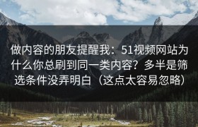 做内容的朋友提醒我:51视频网站为什么你总刷到同一类内容?多半是筛选条件没弄明白(这点太容易忽略)