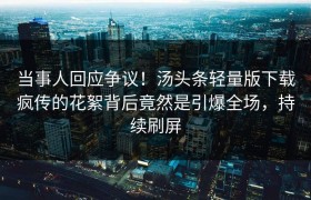 今晨风波再起!汤头条轻量版下载惊现丑闻,当事人无奈回应:持续刷屏