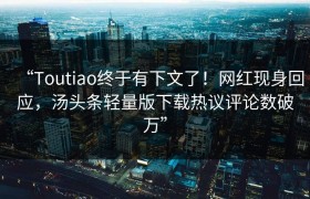 “Toutiao终于有下文了!网红现身回应,汤头条轻量版下载热议评论数破万”