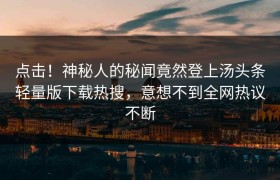 点击!神秘人的秘闻竟然登上汤头条轻量版下载热搜,意想不到全网热议不断