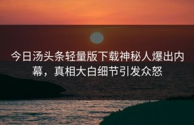 今晨,互联网一片沸腾!许多人从社交平台、新闻网站到各大论坛上,纷纷讨论起了汤头条轻量版下载的消息。不...