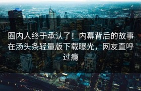 圈内人终于承认了!内幕背后的故事在汤头条轻量版下载曝光,网友直呼过瘾