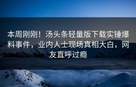 本周刚刚!汤头条轻量版下载实锤爆料事件,业内人士现场真相大白,网友直呼过瘾