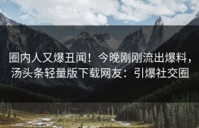 这周的娱乐圈,注定会因为一条突如其来的爆料而掀起波澜。消息源自一个大热的新闻平台——汤头条轻量版,它...