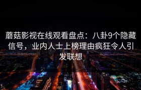 蘑菇影视在线观看盘点:八卦9个隐藏信号,业内人士上榜理由疯狂令人引发联想