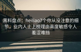 黑料盘点:heiliao7个你从没注意的细节,业内人士上榜理由高度敏感令人羞涩难挡 在娱乐圈和网络圈...