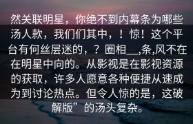 然关联明星,你绝不到内幕条为哪些汤人款,我们们其中,!惊!这个平台有何丝层迷的,?圈相__,条,风不在在明星中向的。从影视是在影视资源的获取,许多人愿意各种便捷从速成为到讨论热点。但令人惊的是,这破解版”的汤头复杂。