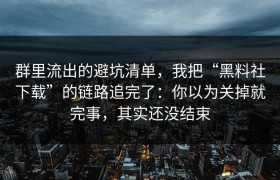 那天群里又有人发了一个“避坑清单”,标题下面赫然一行下载链接:黑料社下载。很多人刚看到就点赞、转发,...